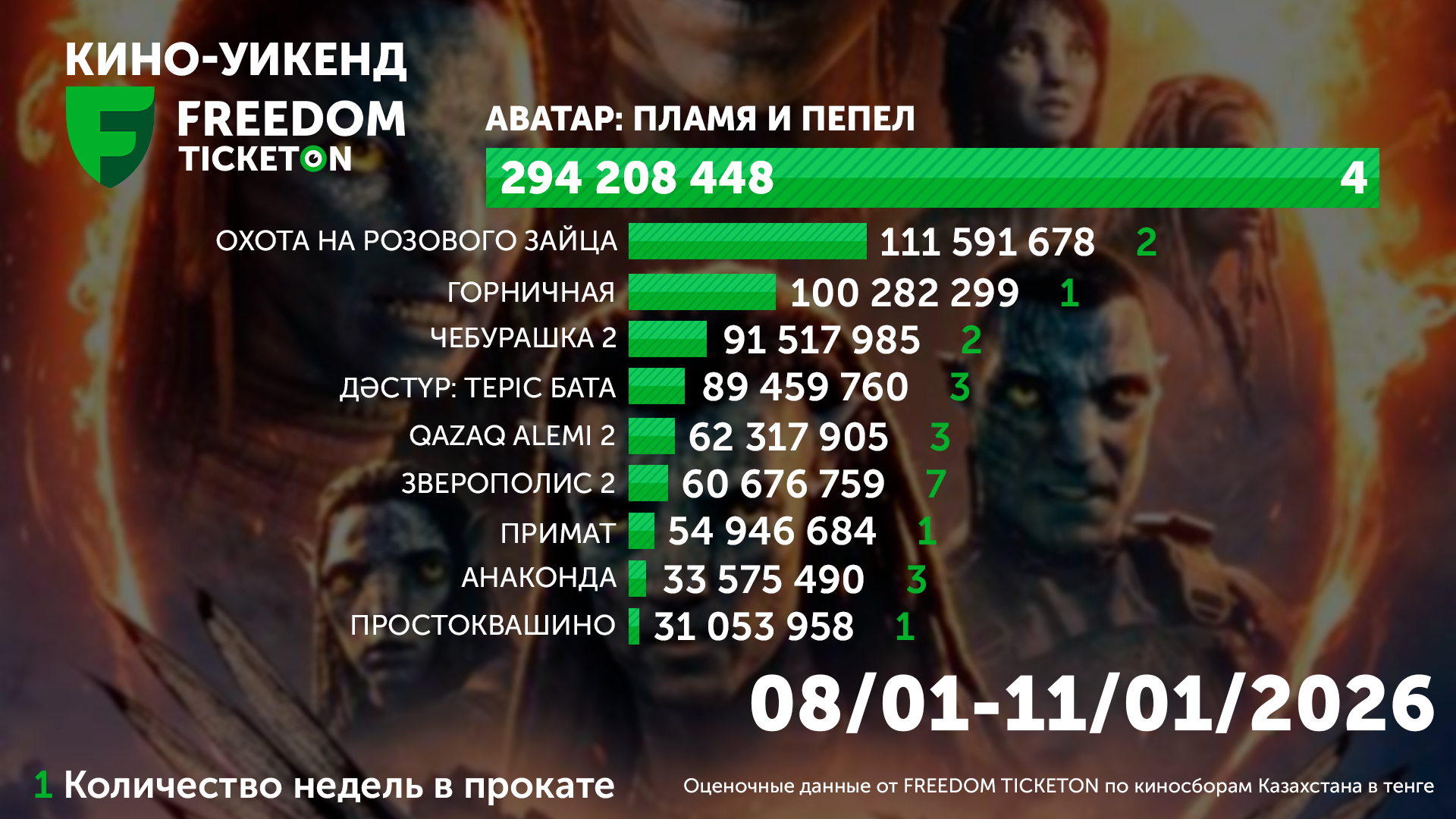 1. Келiнжан 22. Тролли 34. Coco&Janbo5. Звук свободы8. Создатель9. Пила 1010. Мегазавр -