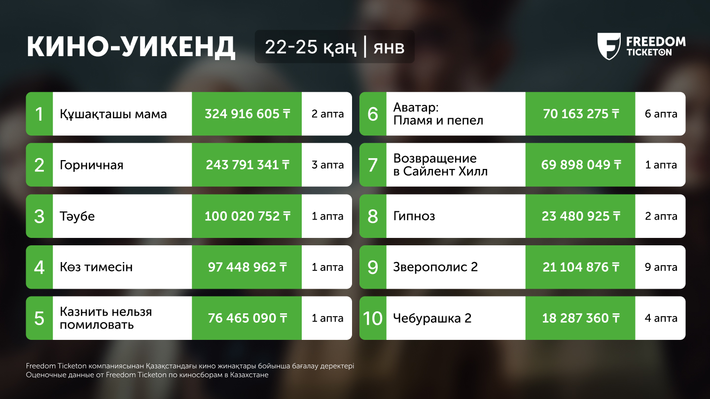 *В данном рейтинге киносборов фильм «Гудбай, мой бай 2» не участвует, т.к. не были предоставлены данные о сборах за 27-02 марта.