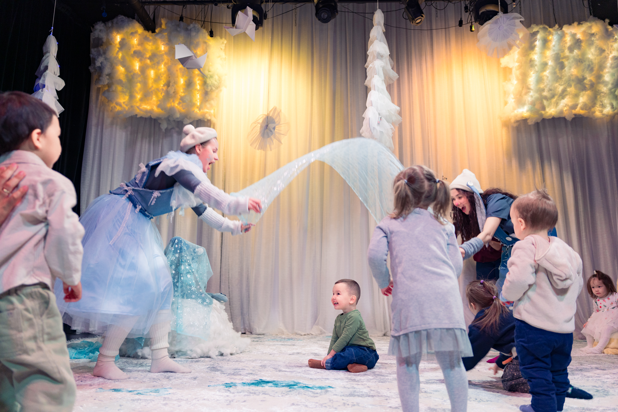 Уникальность нашего спектакля в том, что актёры не просто играют на сцене — они взаимодействуют с каждым малышом, вовлекают в историю и делают его частью волшебства.