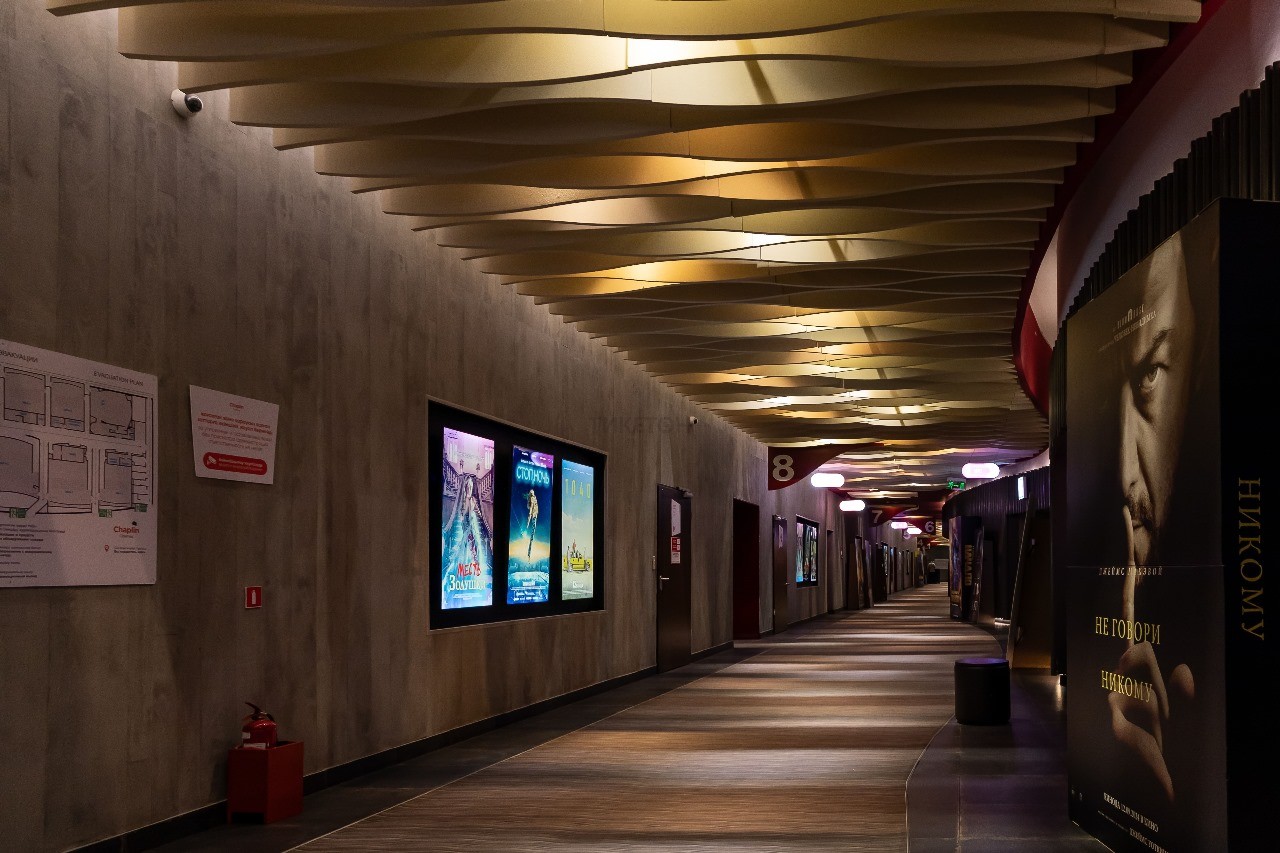 Одиннадцатизальный кинотеатр нового поколения на 1830 мест. Общая площадь кинотеатра – пять с половиной тысяч квадратных метров. Уникальность Chaplin в MEGA Silk Way в технологии RealD 3D, которая дает высокую четкость картинки, а также в размерах экранов – их высота в двух залах достигает 12 метров, пока это самые большие экраны в столице.
